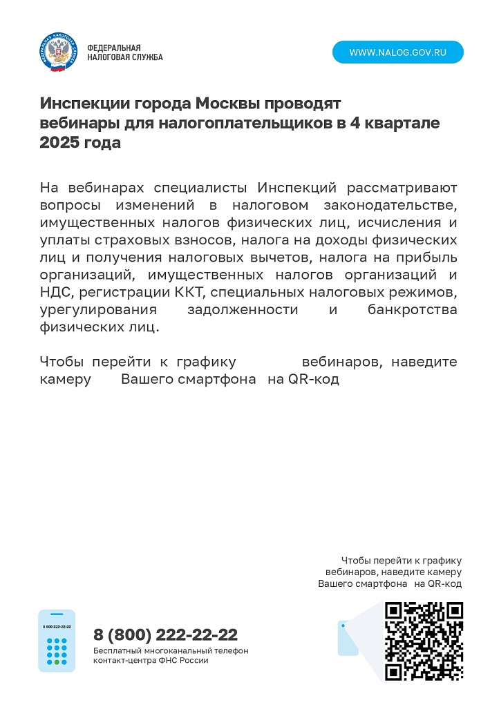 Инспекции города Москвы проводят вебинарыдля налогоплательщиков в 4 квартале 2025 года